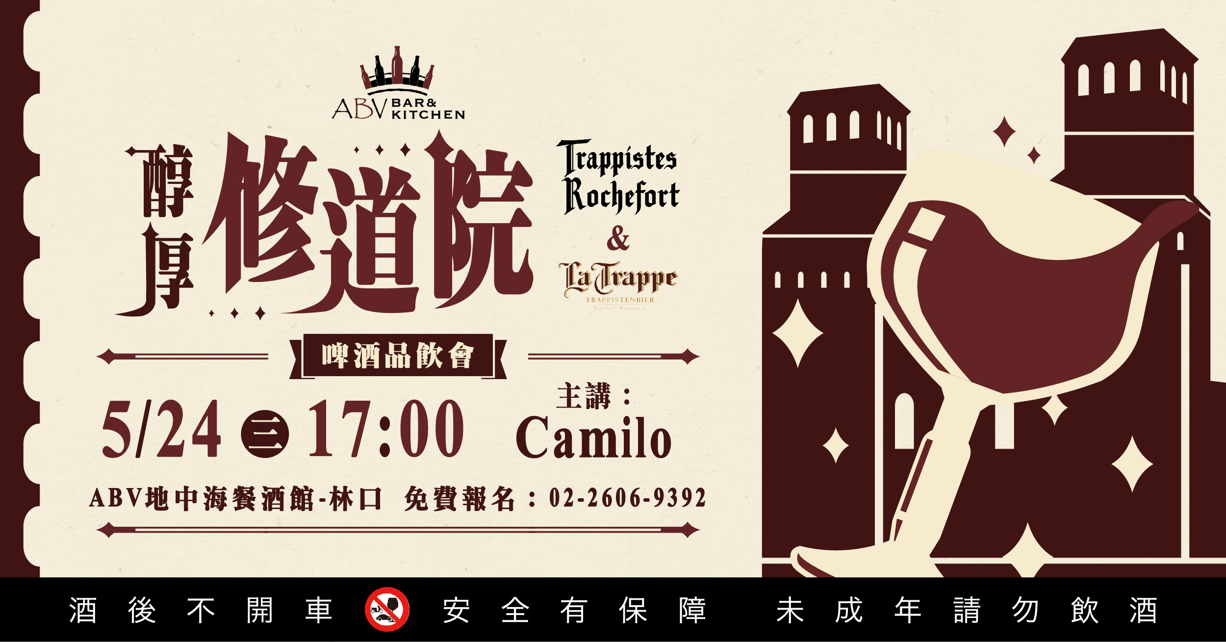 這次ABV準備了來自塔珀啤酒廠(La Trappe Trappist)以及侯旭弗啤酒廠(Trappistes Rochefort)的修道院啤酒,這兩間都是獲得”Authentic Trappist Product(ATP)”認證標誌之修道院啤酒品牌,同時也是國際特拉普會聯盟(The International Trappist Association, ITA)內的修道院成員,全球經過認證的只有20間,歷史悠久且品質是掛保證的!