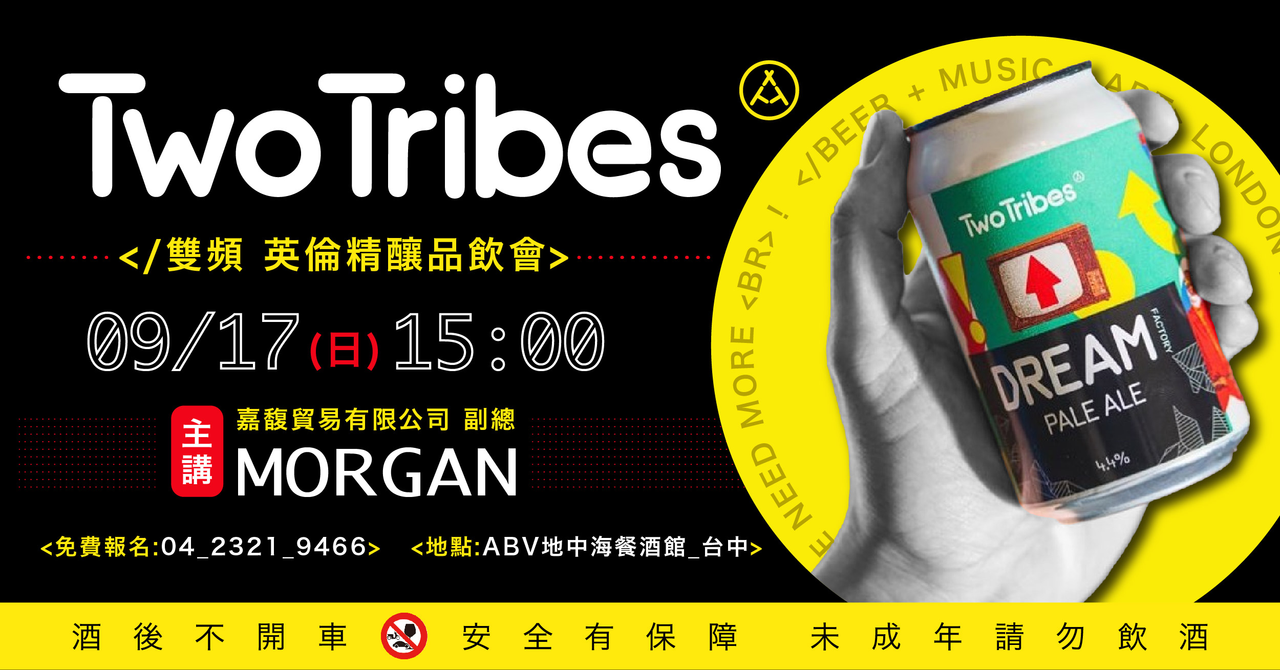 9月17日ABV地中海餐酒館 – 台中|英國Two Tribes 啤酒品飲會