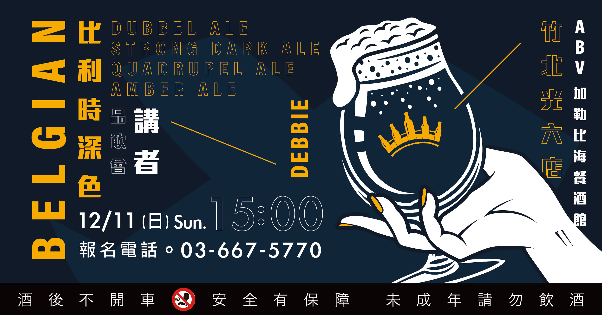 品嚐比利時啤酒,就像是走入啤酒世界最繽紛的樂章,品飲會講師-DEBBIE此次與你細細分享:BELGIAN QUADRUPEL ALE、AMBER ALE、STRONG DARK ALE、DUBBEL ALE等深色酒體的比利時系列啤酒,一同體驗複雜且濃烈、豐富滑順、令人不自覺陶醉的深色精釀吧!