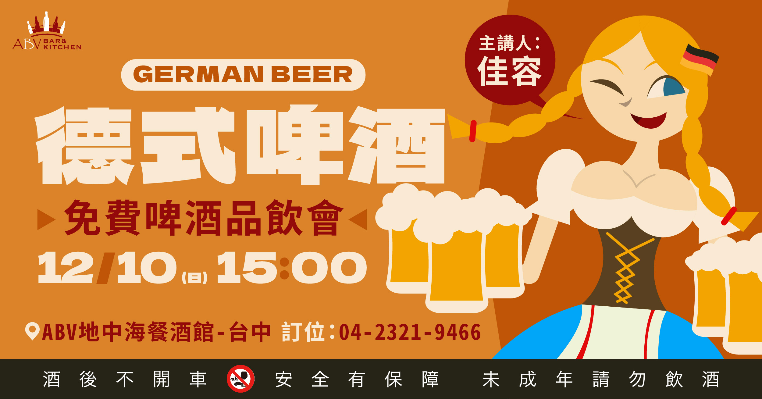 與其他主要啤酒國家相比,啤酒在他們民族情感和文化之中有著更重大的重要性。今天在精釀啤酒日益發達的時代,一般可接觸到的種類接近20多種,我們也很難想像討論啤酒時會漏掉他們,畢竟啤酒在台灣一般認知中是德國人的發明。本次品飲會帶你深入了解,從杯型到溫度、類型、濃度等不同差別,一同來品飲經典德式精釀的奧妙風味吧!