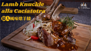 悉心燉煮羊膝至軟嫩,並使用羊大骨熬製高湯後調製獵人風味的番茄基底醬汁