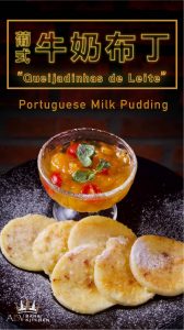 葡式牛奶布丁,“Queijadinhas de Leite” Portuguese Milk Pudding,葡萄牙傳統甜點“Queijadinhas de Leite”,彷如蛋塔內餡抑或是爆漿起司塔的口感,隱隱嚐見肉桂糖霜的香,搭配上香橙果醬,濃醇香滑的飯後甜點之選。