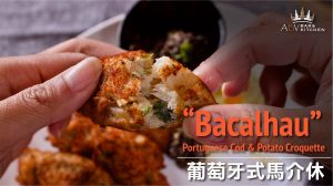 葡萄牙美食的精髓【馬介休】(葡萄牙語「Bacalhau」的中文音譯),是天主教徒每周五、大齋期與平安夜齋戒不可或缺的美食,按字面上的意義則為「鹽醃鱈魚乾」,將鱈魚與馬鈴薯泥、蛋汁攪拌均勻捏製後下鍋油炸至金黃,鬆軟綿密的口感再搭配黑橄欖醬更提升風味層次。