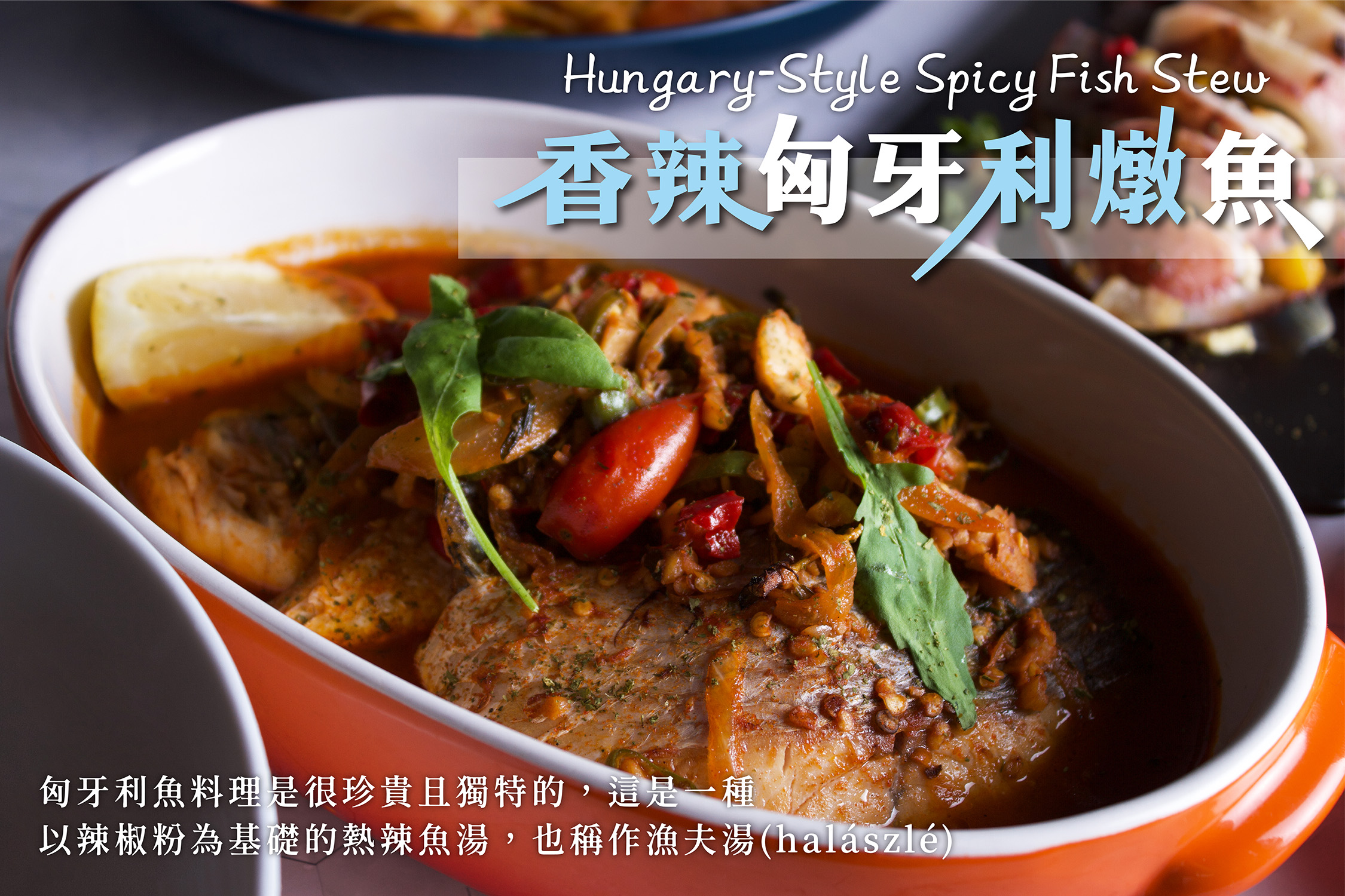 匈牙利是一個內陸國家,因為這裡沒有龐大的海洋資源,所以,匈牙利人會食用大量的淡水魚,包括鯉魚、鯰魚、鱸魚。也因此,匈牙利式的魚菜(魚料理)是很珍貴且獨特的。當地有一道特色料理稱作漁夫湯(halászlé)或匈牙利式燉魚,是一種以辣椒粉為基礎的熱辣魚湯 ,就像是一道鮮紅的熱菜,用大量的匈牙利辣椒粉和淡水魚製成。ABV比照傳統,將高湯放入大量的匈牙利紅椒粉,跟乾辣椒,加熱至滾燙時,放入鱸魚至沸騰的湯中,這就是傳統的匈牙利式燉魚。