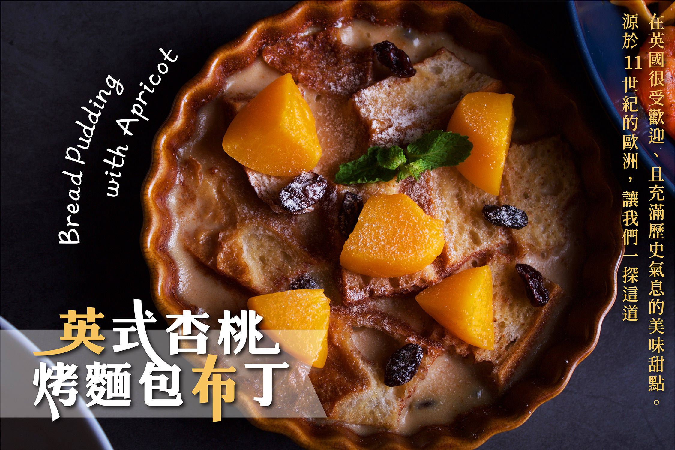 ABV以鮮奶、砂糖、雞蛋、香草莢、肉桂製作蛋奶液,將切成方塊的麵包浸濕,再加入葡萄乾,一起烘烤至頂層變的略微酥脆,出爐後再放上新鮮水蜜桃,美味的英式布丁麵包,就出爐啦!