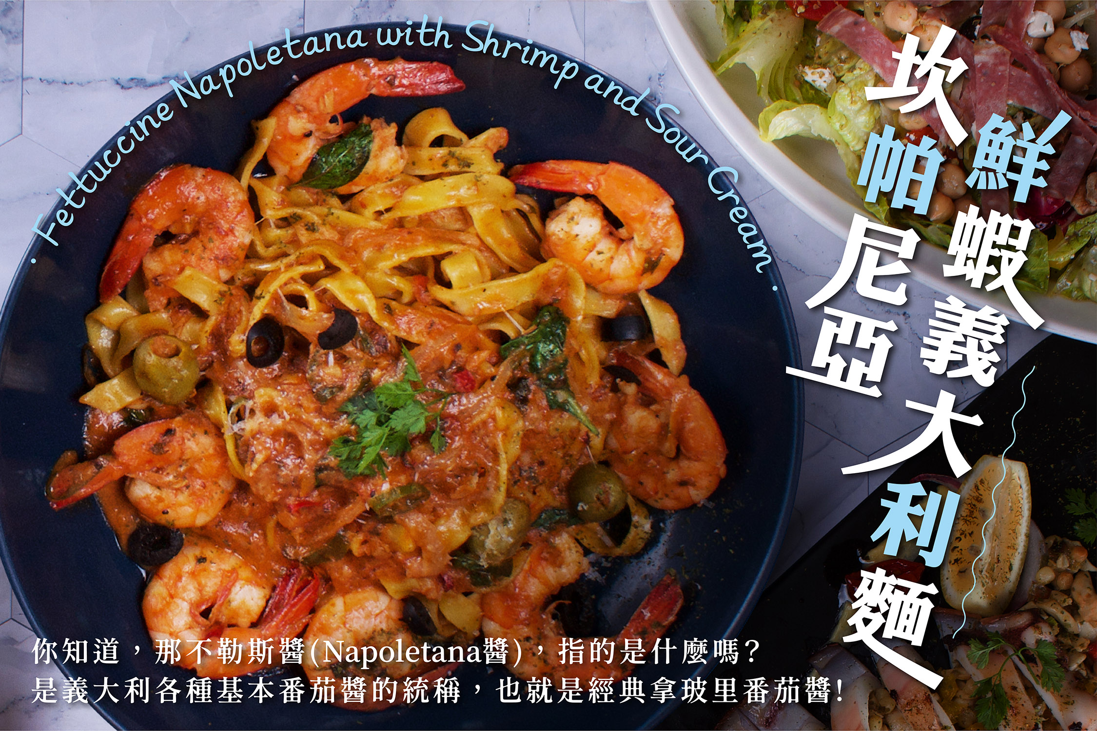 這道經典的坎帕尼亞鮮蝦寬扁麵,就是經典的蕃茄紅醬與義大利麵的結合,選擇寬扁麵,更是希望讓蝦的鮮味,與蕃茄紅醬完美結合,這時候才知道,原來這那不勒斯番茄醬,還有這樣的歷史。