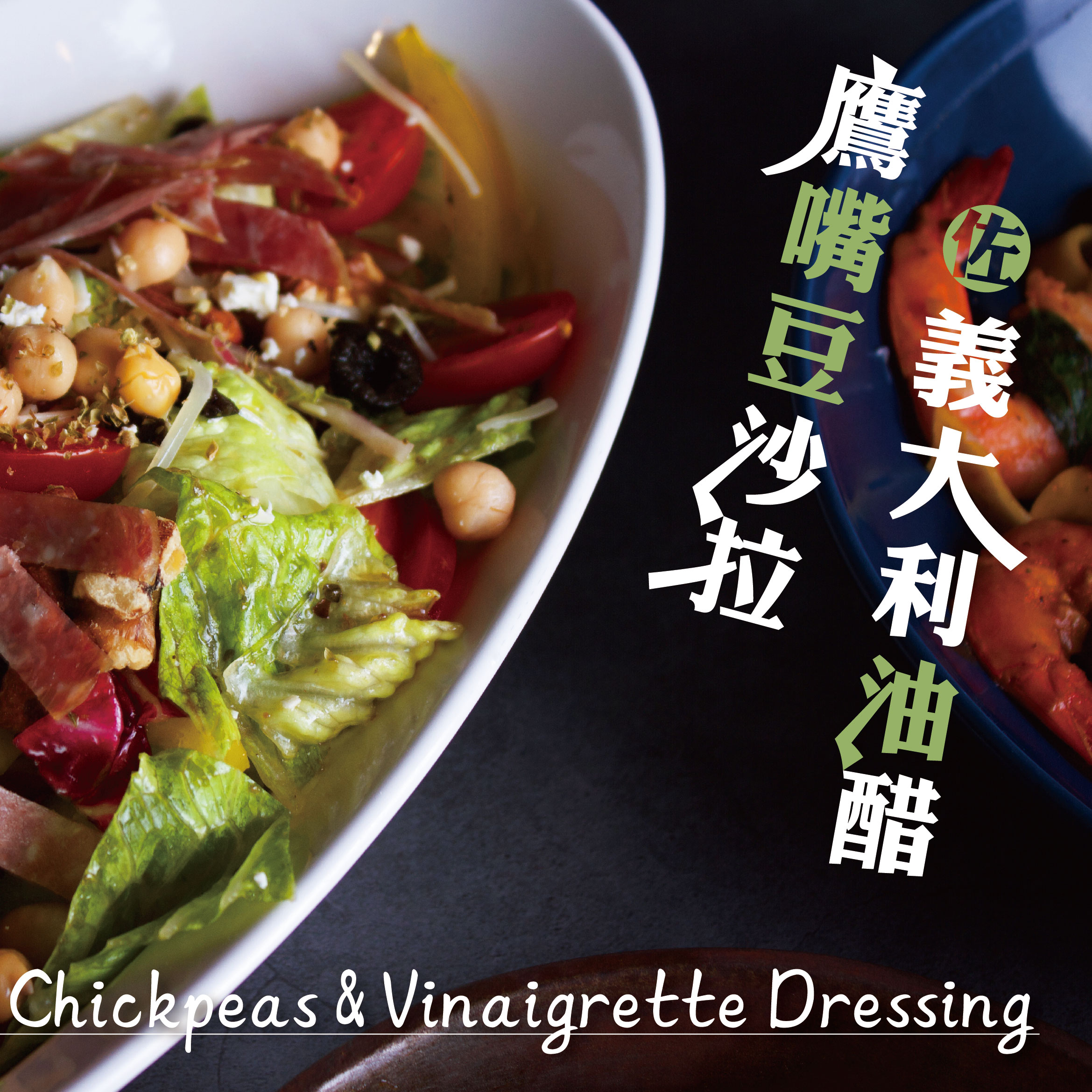 鷹嘴豆是地中海和中東美食的關鍵成分,成熟的鷹嘴豆可以在沙拉中冷煮和食用,他更是一種營養豐富的食物。ABV以脆口新鮮的各種時令生菜,搭配鷹嘴豆,以及義式臘腸,並以義大利油醋醬作為美味的介質,是一道營養且豐盛的生菜沙拉。