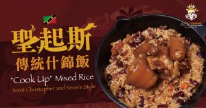 在聖克里斯多福及尼維斯當地,米飯和鹹魚的搭配十分常見。ABV選用鹽漬鱈魚、雞腿肉、紅腰豆、牛番茄、洋蔥等食材切成丁燉煮。後拌入米飯收汁混合,保有顆粒感的米飯吸附滿滿濃郁風味,配上富有膠質的香嫩豬尾一同品嚐,更是絕配。