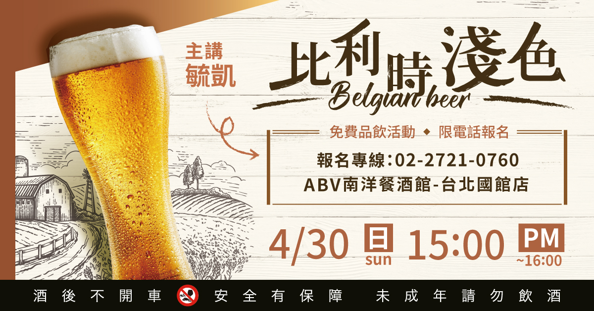 形形色色的風格造就了如今的比利時啤酒,本次品飲會由主講毓凱帶領大家品嘗比利時淺色啤酒,喜愛比利時啤酒的您絕對不能錯過!