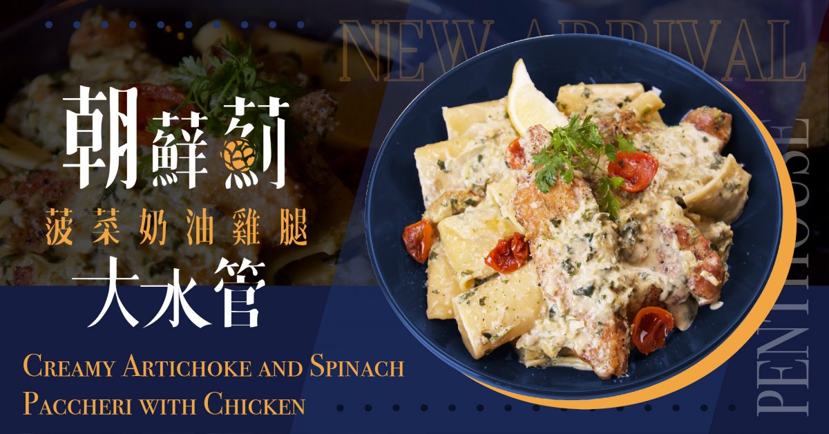 本次開發的新款義大利麵,ABV將朝鮮薊發揮至極大,不僅用朝鮮薊製作菠菜奶油醬,另外更以義大利傳統手法將其經過油炸入菜。朝鮮薊菠菜奶油白醬加上油炸朝鮮薊,整片去骨雞腿排、勁道義大利麵一起料理,這絕對是必點必嚐的新菜之一。