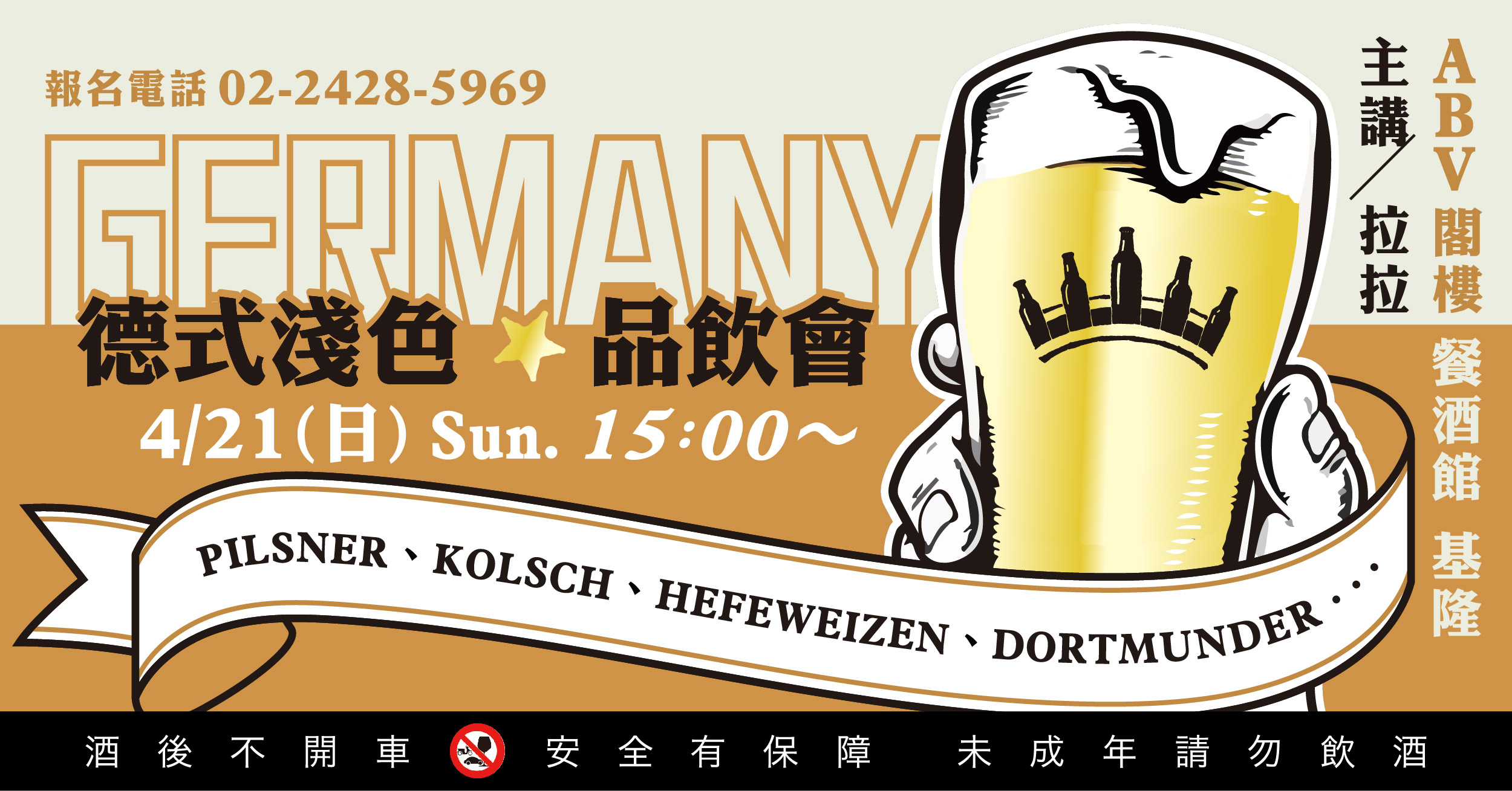 這次ABV從眾多德式啤酒的分類中,挑選出皮爾森、多特蒙德、科隆、水晶小麥…等酒體淺色的種類,邀您品飲鑑賞。如果你喜歡清澈金黃的酒體與啤酒花帶出的獨特風味,更清新、細膩口感的精釀啤酒,就讓ABV帶領你一同進入“徳式淺色精釀啤酒”的世界吧!