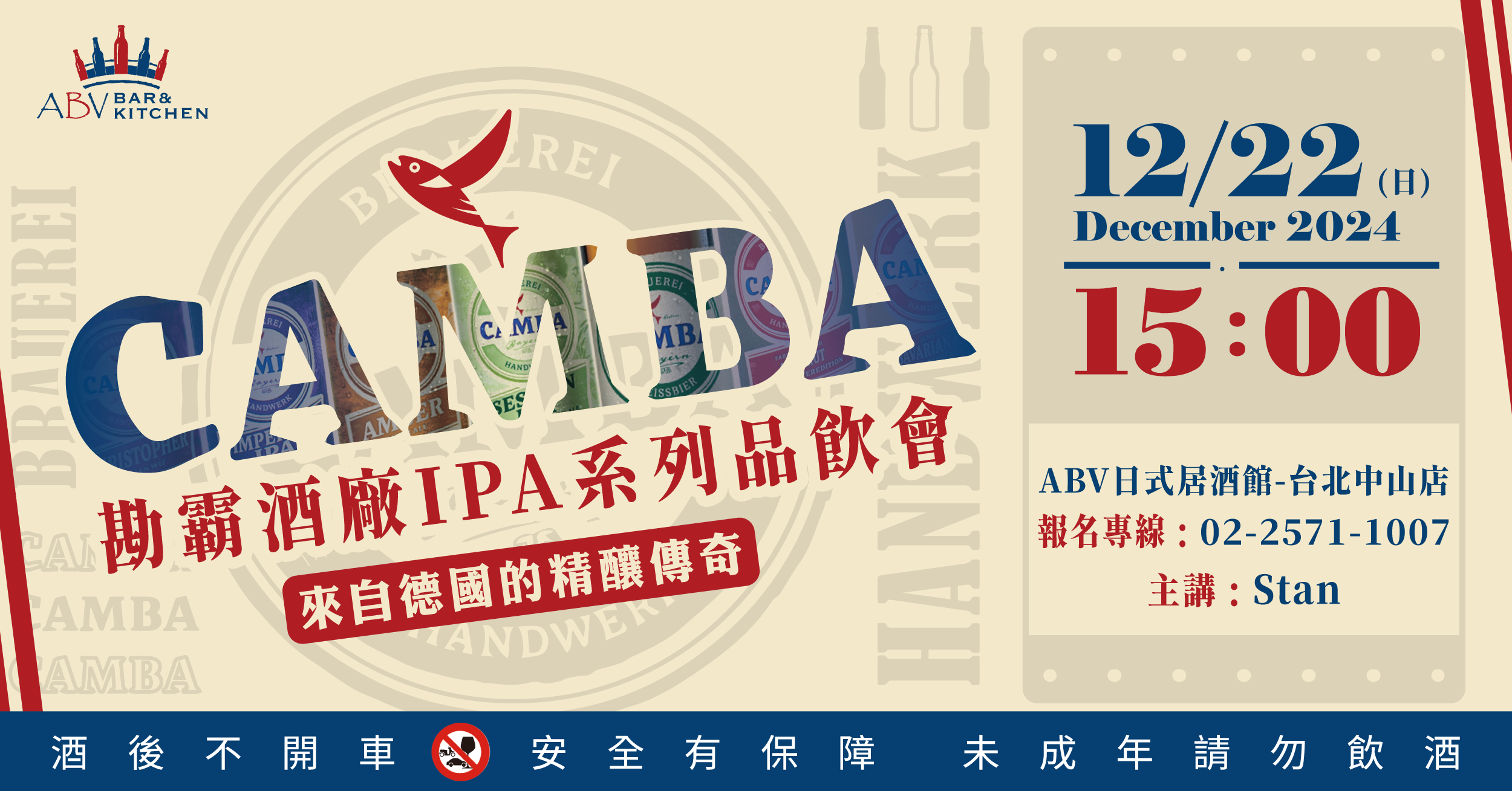 無論您是啤酒愛好者還是想要探索精釀世界的新手,這場品飲會都將帶給您難忘的體驗!敬請期待,與我們一起舉杯品味CAMBA的精釀藝術!