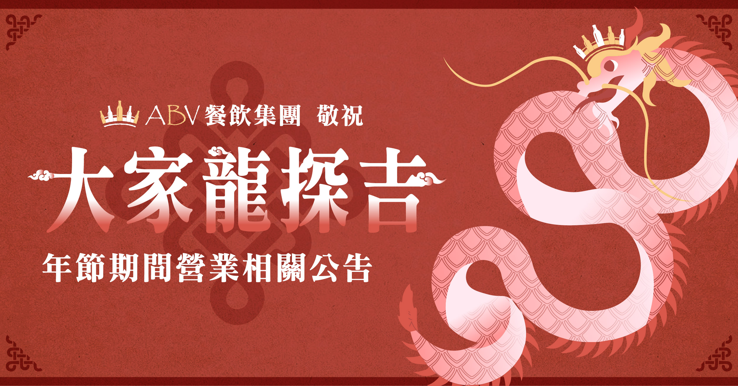 2024年2月9日即將迎來除夕,ABV旗下各間餐酒館(除基隆店外)都將開始店休,