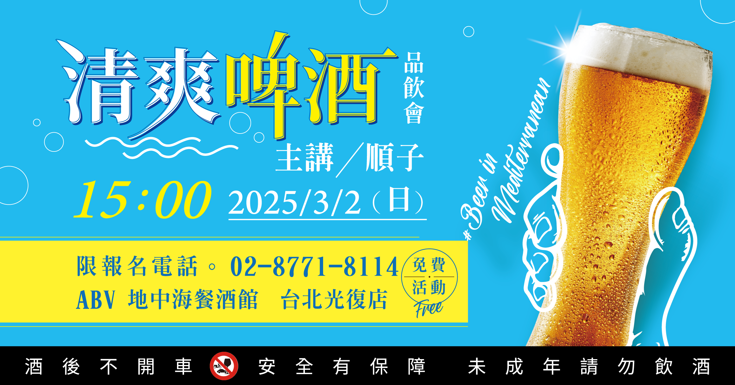 沒有什麼比一杯沁涼的啤酒更能帶來舒爽的快感。本次清爽啤酒品飲會,將帶領參與者沉浸在微氣泡的輕盈口感與細膩的風味變化中,享受每一口啤酒在舌尖綻放的清新感受。