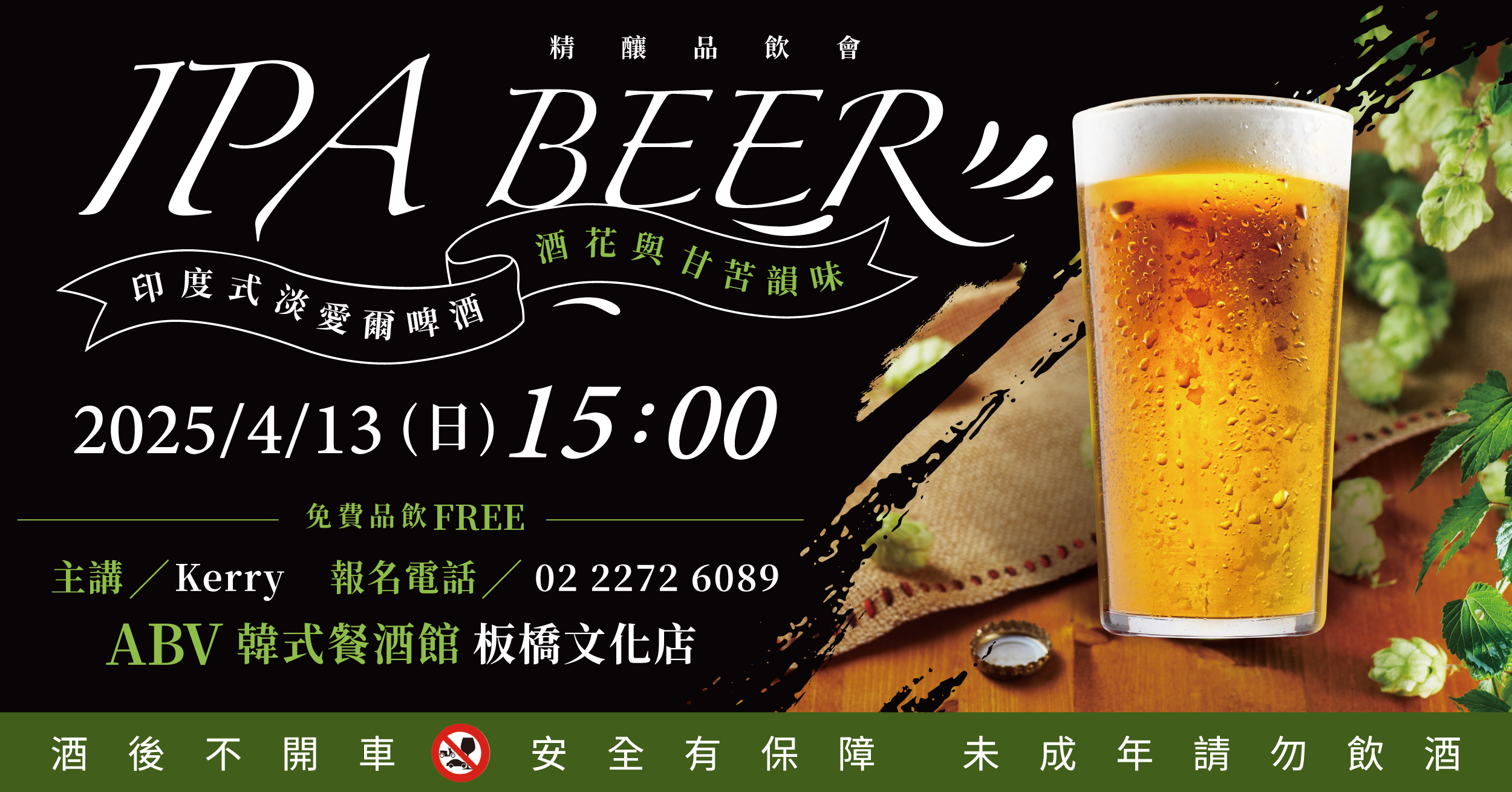 此次品飲會將提供IPA、美式IPA、新英格蘭IPA…等各式IPA,跟著我們一起來體驗IPA的不同之處吧!