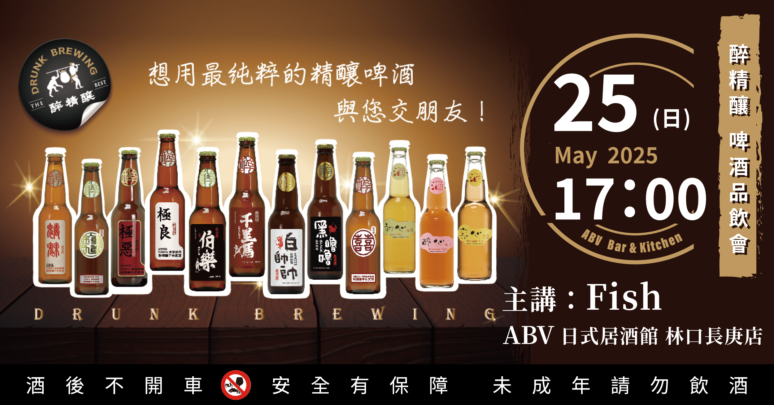 本次品飲會將帶領各位品嘗台灣在地品牌「醉,精釀」各式啤酒,一同感受精釀啤酒帶來的味蕾浪潮吧 !