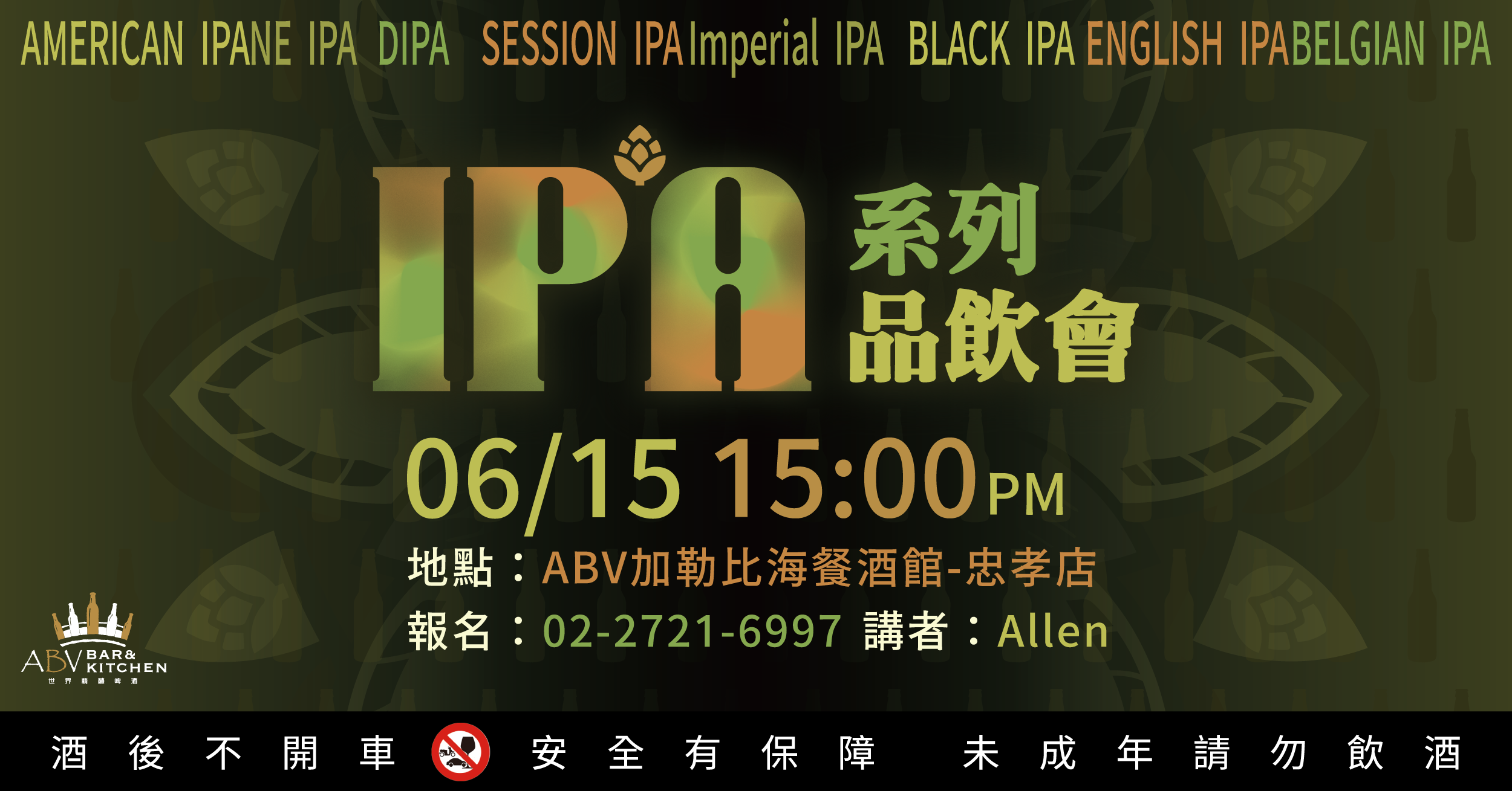 此次品飲會將提供IPA、美式IPA、新英格蘭IPA…等各式IPA,快來一起體驗他們的不同之處吧!