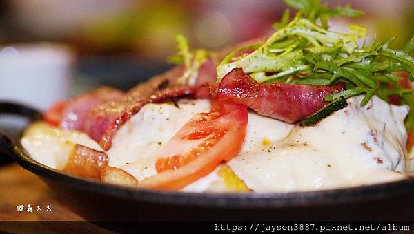 這道始於1926年美國中東部肯塔基州的夜宵料理「熱布朗濕式三明治」,有別於一般三明治,它屬於Open Sandwich的料理作法,以法國麵包為基底,加入雞肉、火腿、培根、櫛瓜、番茄與奶油馬鈴薯,再淋上乳酪白醬進行烘烤,一口下去能吃到香煎過的火腿及培根鹹香,同時它們的油脂已滲透於麵包之中,加上烘烤後白醬和馬鈴薯有點焗化,吃起來除了香醇濃郁、每口都超療癒,完全是道能撫慰心靈、並令人得到滿足的料理。