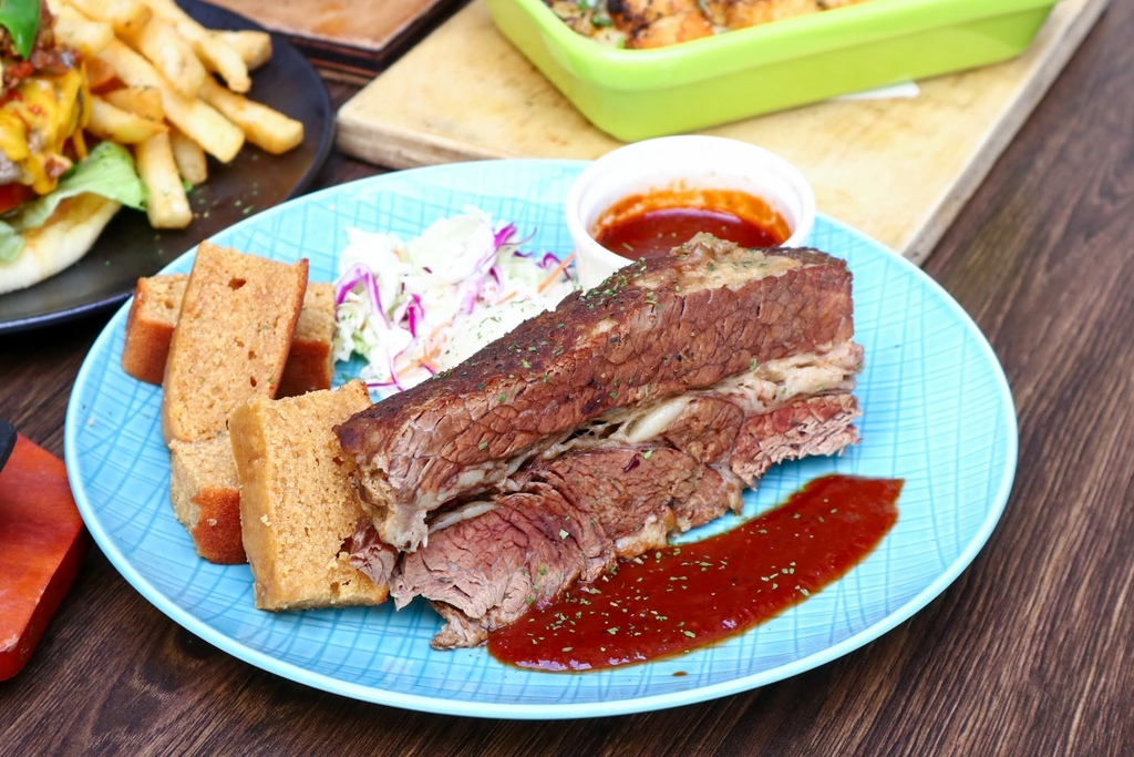 以傳統德州風格整塊碳烤的牛胸肉,絕對是餐桌上的靈魂料理之一