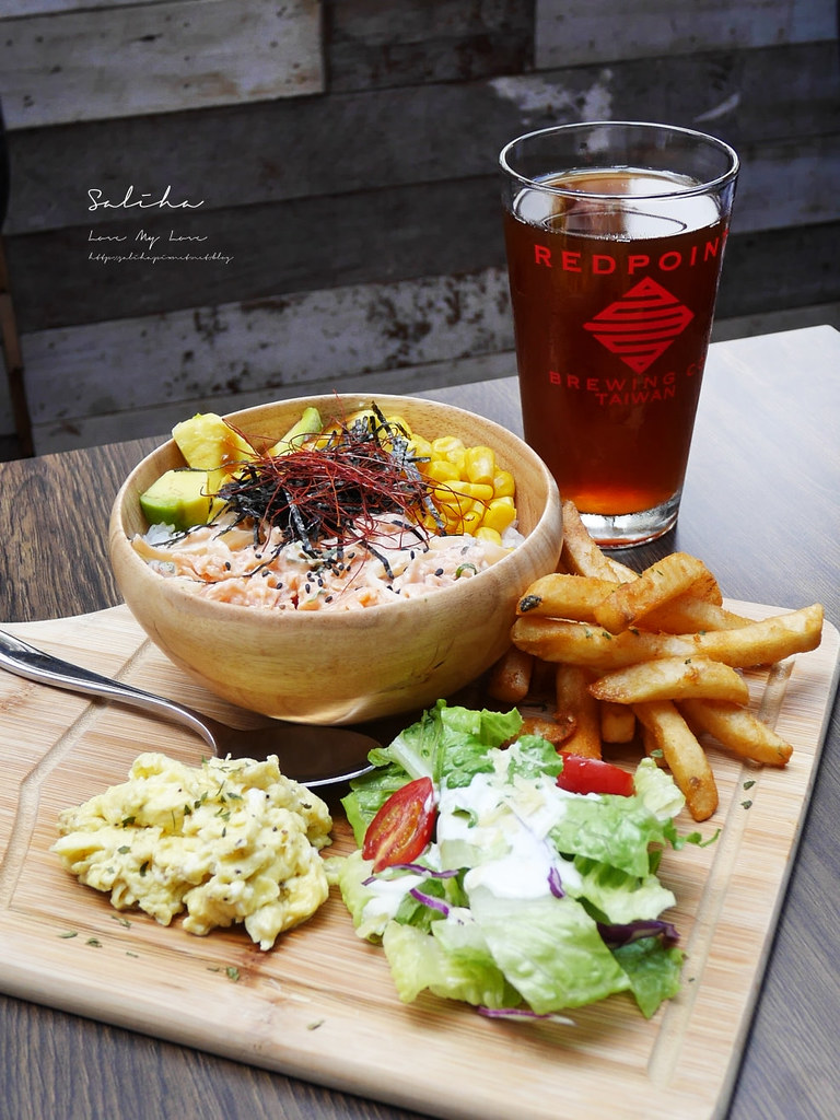 夏威夷生魚飯有點類似散壽司的感覺,以生魚搭配帶酸的米飯,魚的種類可以自鮭魚、鮪魚、辣鮪魚、燻鮭魚四選一,後兩者是會有點微辣的,我選了ABV自製的燻鮭魚,飯上撒了海苔粉、海苔絲、辣椒絲等,佐料則搭配酪梨及玉米燻鮭魚以美乃滋拌攪,鮮鹹微辣,充分攪拌後搭配清甜的酪梨及玉米一同入口,滋味豐富、鮮甜變化多多,蠻有海島風情,是道很爽口開胃的料理,夏天吃也不怕沒食慾。