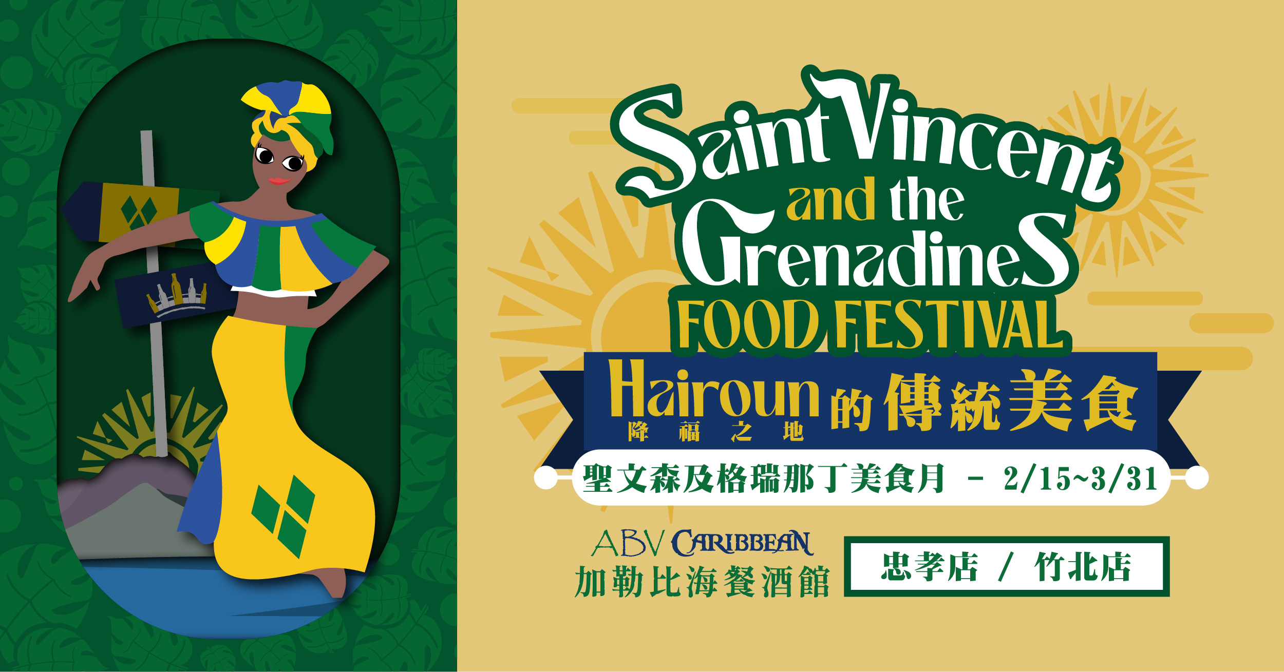 ABV加勒比海餐酒館聯合聖文森及格瑞那丁大使館,共同研究,復刻該國的傳統美食。在主廚們精心研發下,為各位呈現8道聖文森及格瑞那丁傳統佳餚,有特色風味的黑啤酒燉雞、皮酥內軟的辣味牛肉酥餅、健康美味的蟹肉蔬菜燉湯、傳統甜食的杜卡納糕,美味佳餚各式面貌,等待著您好好細心品味一番,快來跟我們一同加入【聖文森美食月】狂歡吧!