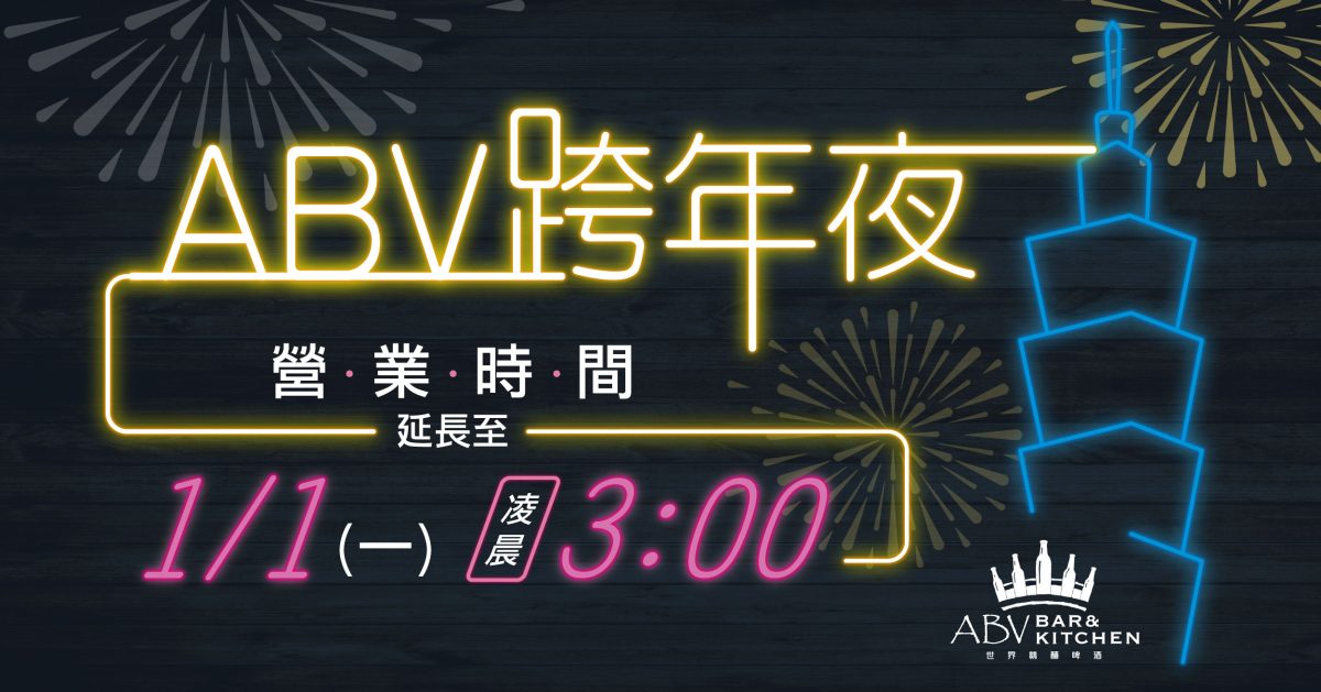 ABV在各縣市的所有餐廳,2024年1月1日,跨年營業時間延長至1月1日凌晨3點。 ABV與您一起倒數陪伴您迎 […]