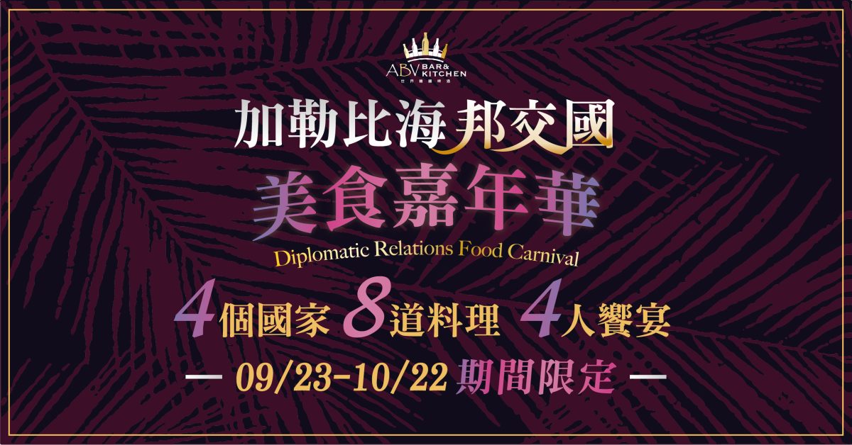 「美食外交」響應邦交國嘉年華系列活動,ABV推加勒比海邦交國美食4個國家8道料理4人饗宴,歡迎品嚐!