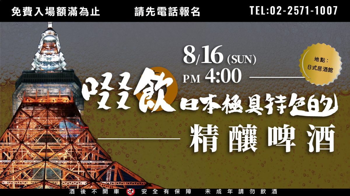 8/16 16:00啜飲日本極具特色的精釀啤酒 品飲會