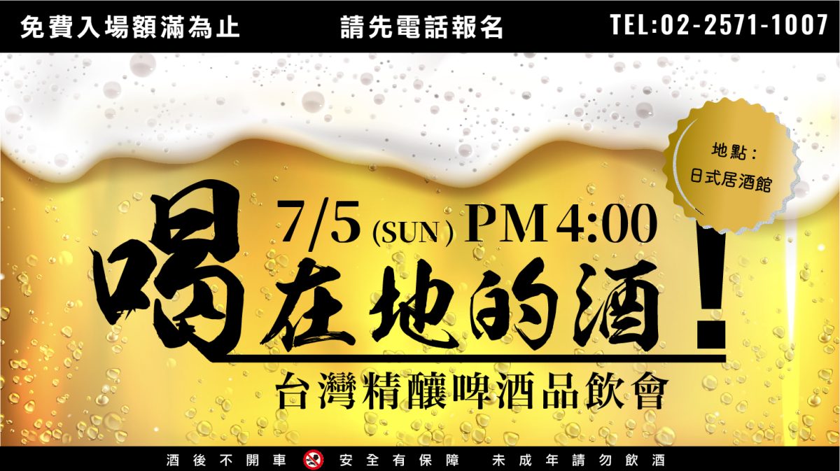 7/5(日)16:00 喝在地的酒!台灣精釀啤酒品飲會