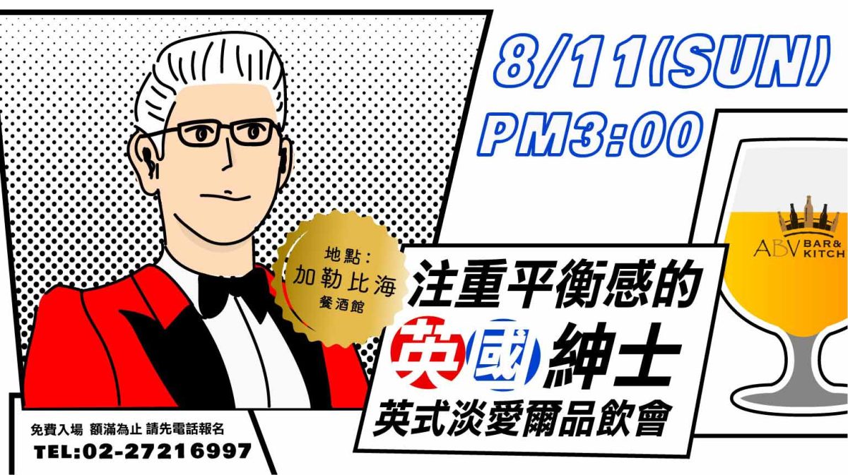 =品 • 精釀= 8/11(日)【注重平衡感的英國紳士 – 英式淡愛爾】品飲會