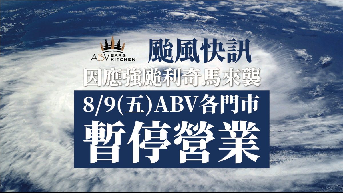 因應強烈颱風利奇馬來襲 ABV Bar & Kitchen 各門市於明日8/9(五) 暫停營業一天 颱 […]