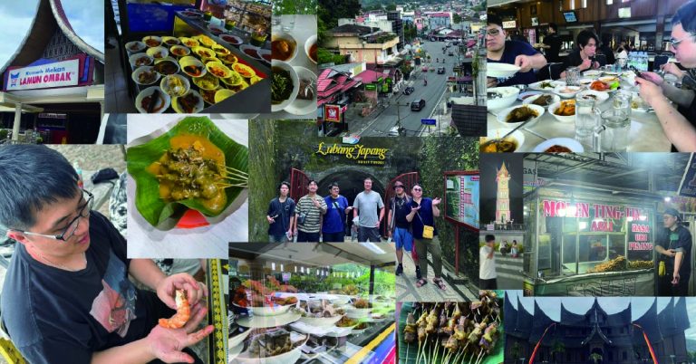 來到蘇門答臘西岸以穆斯林為主的地區—巴東,這座米南加保文化的核心城市,被譽為仁當的故鄉。 走進市集,空氣裡瀰漫著辣椒、薑黃與椰奶的香味,一盤盤仁當牛肉在鍋裡慢火翻滾,肉質結實、辛香濃厚,宛如這片土地的縮影;夜裡的小吃攤熱鬧非凡,沙嗲、椰漿飯