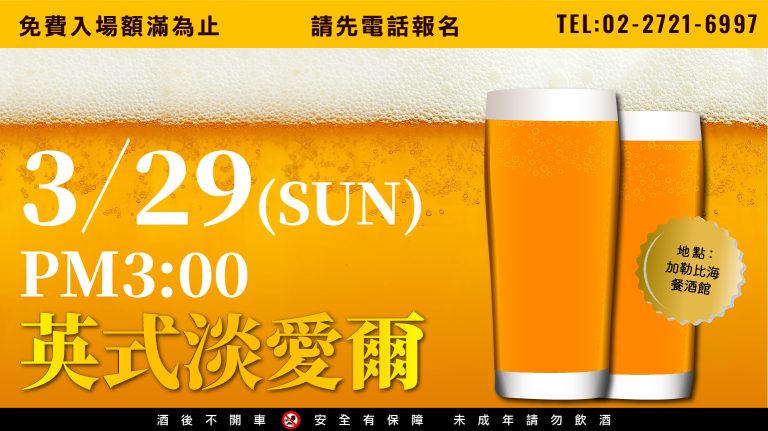 Time for British style beer !! ☎☎☎限電話報名☎☎☎ ➡日期/時間:2020 年 8 月 2 日 (星期日) 下午四點 ➡活動地點:ABV日式居酒館(中山北路二段39巷16-2號) ➡活動名額:20 ➡費用:
