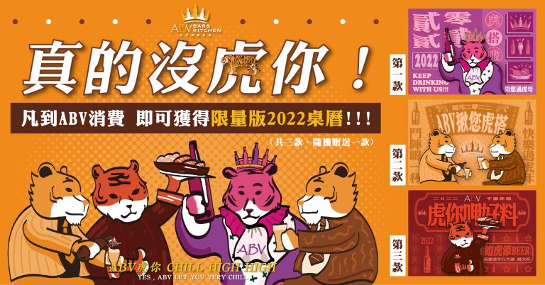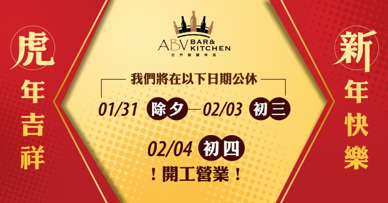 2022年1月31日就是除夕,我們這天就開始店休囉,2月4日星期五開工,正常營業。 感謝大家的支持,今年是虎年,祝福大家 虎虎生風、瑞虎豐年、五虎(福)臨門 2022年2月4日 星期五 開工,就讓ABV