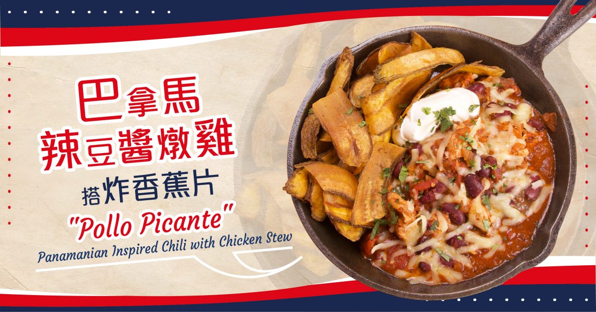 Pollo Picante是一道美味的菜餚,來自於墨西哥、秘魯和哥倫比亞等 國家。正如其名,這道菜品以巴拿馬辣豆醬為主,將辣椒粉、紅椒粉燉 煮奶油豆至綿滑軟透,再放入雞腿肉,再次燉煮。微辣口感搭配濃郁的 融化起司,這道菜肴肯定會滿足您的口腹之欲,讓您感到滿意!