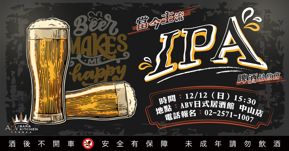 12月12日ABV日式居酒館|當今主流 IPA 啤酒品飲會