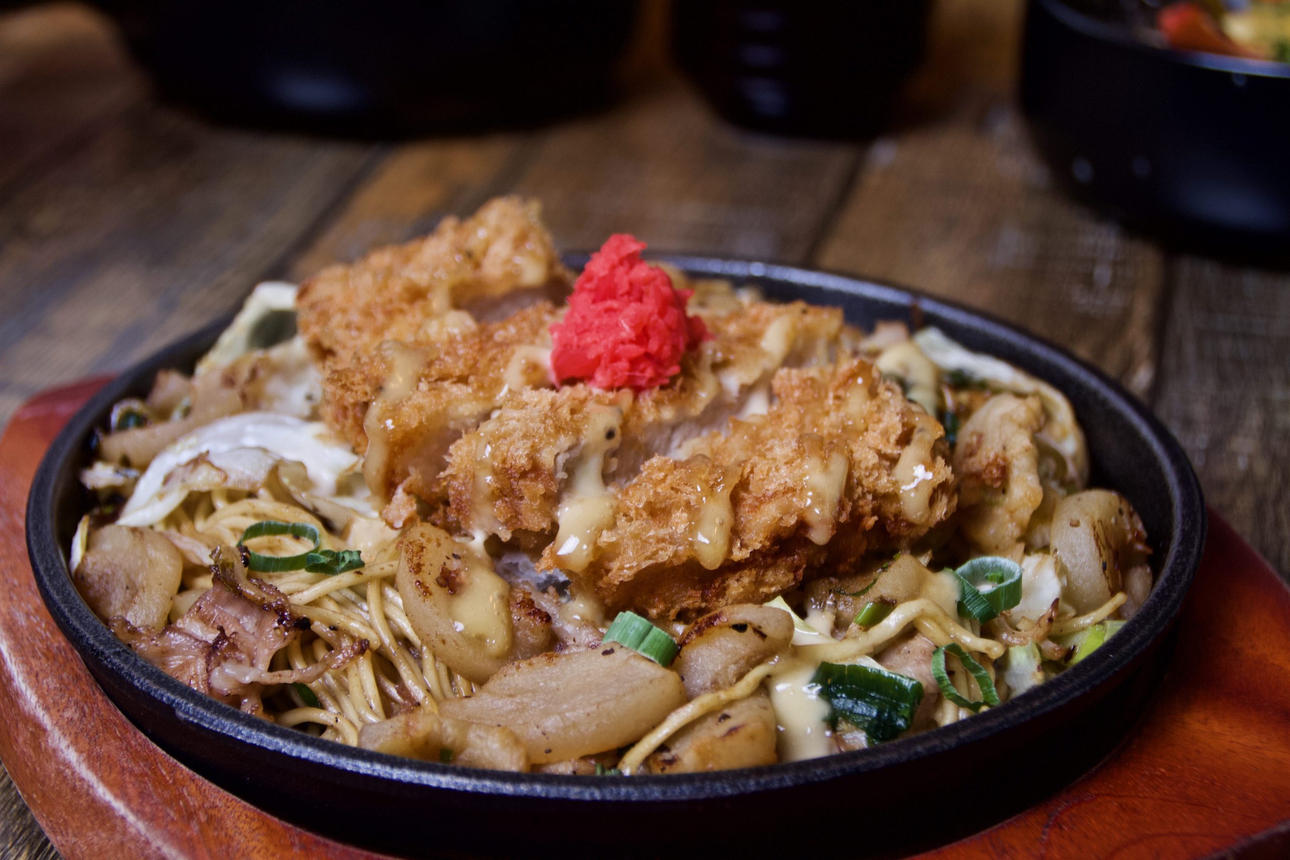 富士宮炒麵最重要的元素是“豬油渣”來作為靈魂核心,豬油經過大火煸至去除多餘油脂,而保留豬油香氣與焦脆口感,搭配帶有黑胡椒與白胡椒的香氣餅有著淡淡的麻油香的鹽味醬油與炒麵、高麗菜,豬肉片、豬油渣讓整體口感除了鹽味醬油特有的香氣之外,更有著豬油渣脆口的那種特別口感。ABV在升級,以炸豬排搭配鹽味醬油特製的鹽味美乃滋沾醬,讓整體風格更和諧。推薦搭配酒款:比利時雙倍Dubbel