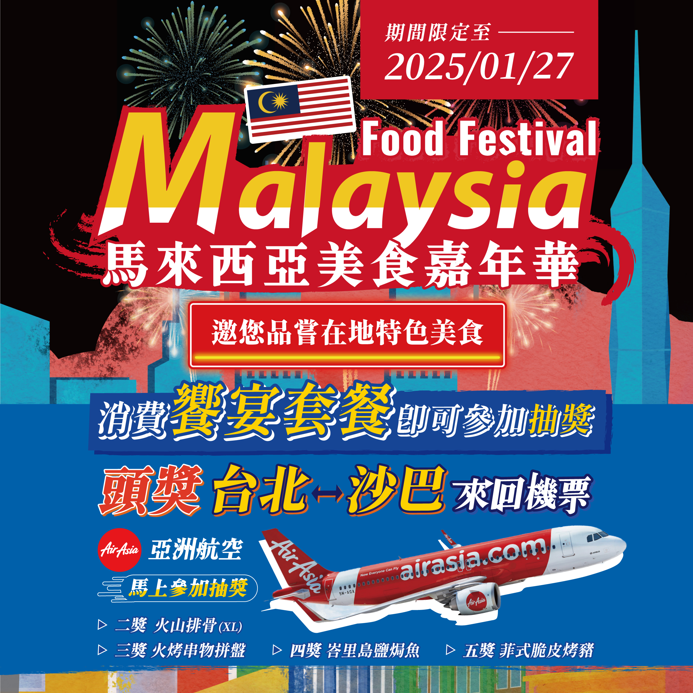 活動參與方式:凡點用馬來西亞套餐,即享有一次抽獎機會。點越多套,抽獎機率越高!