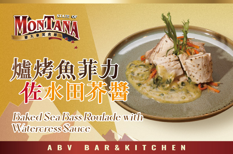 「爐烤魚菲力佐水田芥醬」則是魚菲力捲以韭蔥和胡蘿蔔,再行爐烤。ABV特製的水田芥醬是用檸檬、水田芥加入苦艾酒熬煮而出。肉質細膩且味道較淡,可以很快吸入水田芥醬的美味。