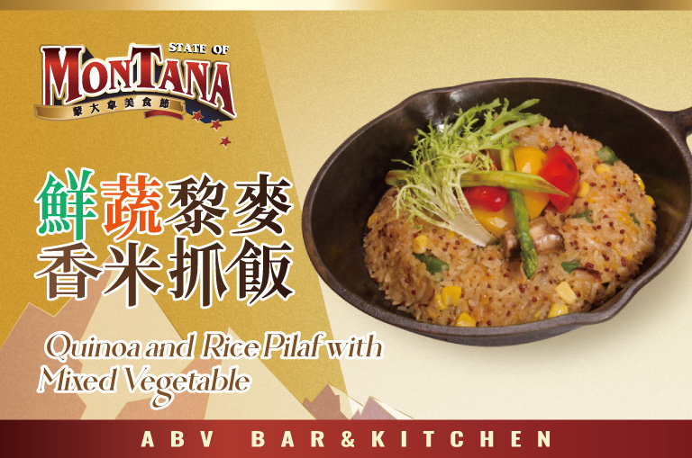 鮮蔬黎麥香米抓飯——在蒙大拿是炙手可熱的替代作物。ABV以適合搭配各式料理的香米抓飯為基底,加入紅藜麥、玉米以及長豆增加口感,一口咬下不僅有淡淡的荳蔻為,還有玉米的香甜,最後特別加入柑橘醬,幫手抓飯增添一層甘甜尾韻。