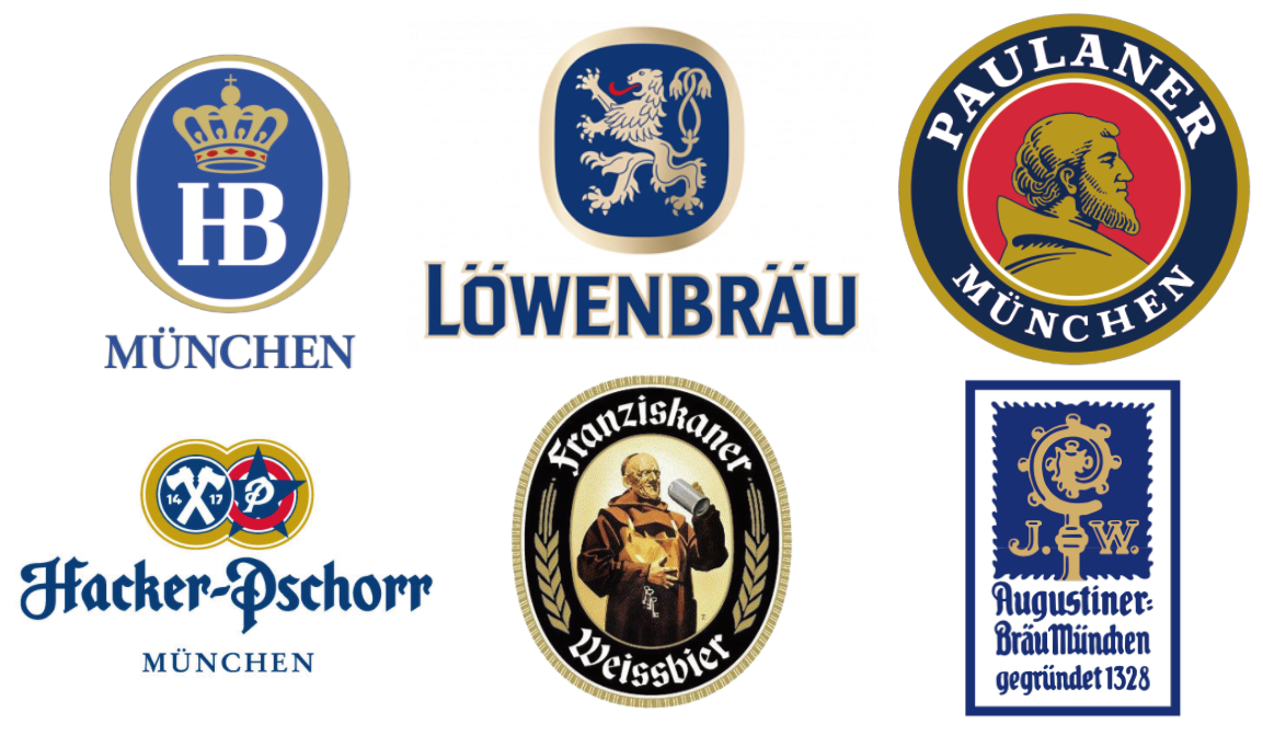 早期,十月啤酒節僅有慕尼黑六大酒廠得以供應啤酒,這六大酒廠也代表了慕尼黑最有錢有權的各方勢力,包含了皇室、貴族和教會。六大酒廠分別是:HB(Hofbraeu)、Franziskaner、Löwenbräu、Paulaner、Hacker-Pschorr、Augustiner。目前台灣可以喝到的有HB和Paulaner,Franziskaner前兩年短暫進入過台灣市場隨即消失。