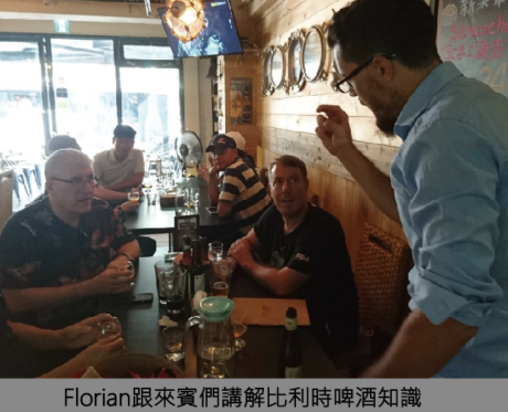 今天的品飲會由來自比利時的代理商Flo親自操刀上陣,八款啤酒中有六款便是Omer酒廠的作品,帶領大家從比利時Strong Golden、Tripel、Strong Dark、Witbier一路喝到水果啤酒與Flemish酸啤酒。Flo除了大方跟大家分享比利時啤酒文化外,還成了被大家搶著拍照的大明星。
