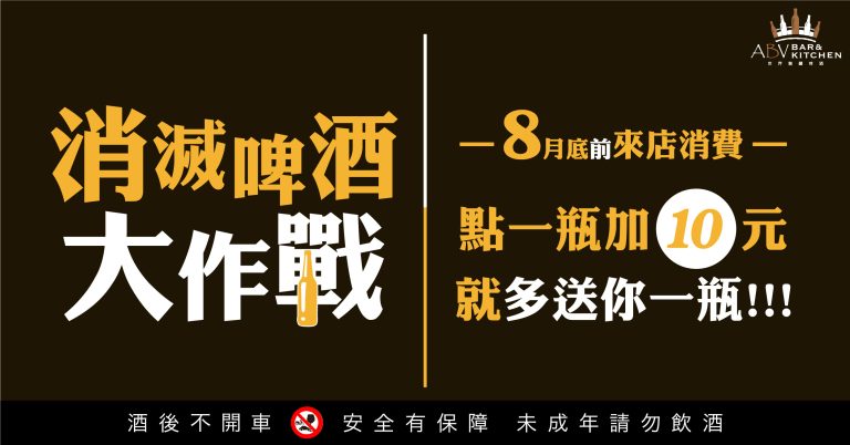 來來來~好消息!ABV大方送,大放送! 凡來ABV Bar & Kitchen任一間餐廳,消費滿千,即可獲得ABV SHOP 精釀啤酒線上商城 95折 優惠喔! 當次滿1000元可獲得乙張,消費滿2000元,可獲得2張,以此類推!滿
