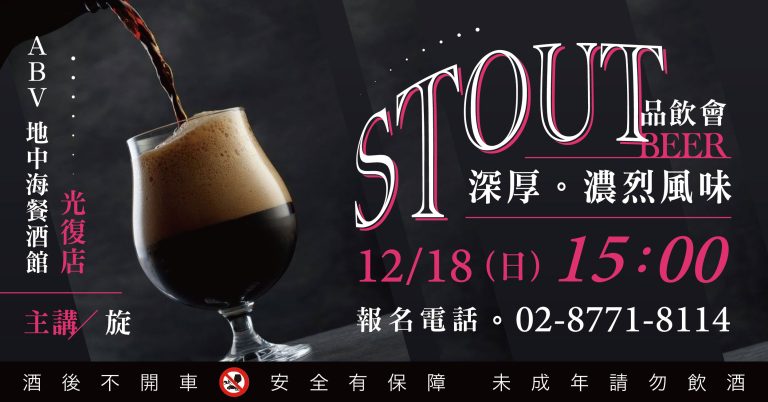 喜歡Stout明顯的焦香麥芽味,以及甘醇層次口感嗎?本次品飲會嚴選燕麥、牛奶、巧克力、牡蠣、帝國等,多種風味Stout,邀你一同品飲鑑賞。在主講者-旋的帶領下,暸解深厚濃烈的“Stout”吧! ☎️☎️ 限電話報名 ☎️☎️☎