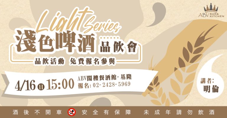 ABV的招牌大酒櫃總是琳瑯滿目,想挑選到最適合自己的啤酒嗎?那就跟著品飲會一起來好好認識各種啤酒的特色吧!這次為您帶來的是「淺色啤酒」,顏色看起來淺淺的我們通通來給它試一輪!(不知道要喝到什麼時候… 淺色啤酒其實囊括了非常多的種
