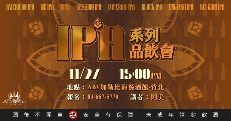 入口的苦味與接踵而至的酒花芬芳 – 這就是IPA!如果您也喜歡IPA的話那千萬不能錯過這場IPA大集合~ 有美式、雙倍、帝國、新英格蘭等等各種不同IPA在這次的品飲會等著您,讓我們一起跟著專業侍酒師Allen的腳步,一起認識更多