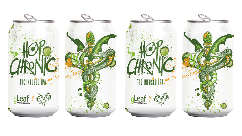 而在精釀啤酒與大麻產業蓬勃發展的美國,以瘋狂著稱的Flying Dog酒廠自是不落人後的與大麻診所 Green Leaf 合作推出第一款添加 THC 的啤酒。(THC 中文為四氫大麻酚,這是能讓人興奮的精神藥物)此款啤酒命名為Hop Chronic,據說是一款無酒精的IPA啤酒。不過,可別高興得太早,目前只作為醫療用途,僅能在大麻[合法的馬里蘭州各地的藥房購得。