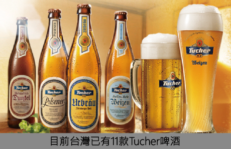 自2012年6月起,Tucher啤酒在台灣正是邁入第五個年頭,品項也多達了11種。除了市面常見的德式拉格與小麥啤酒外,更包含了原漿啤酒(Kellerbier)、可樂小麥啤酒Cola-Weizen(Ralder)以及雙倍勃克Bajuvator 。其中Bajuvator是台灣啤酒迷要認識德國Doppelbock的最佳選擇之一。
